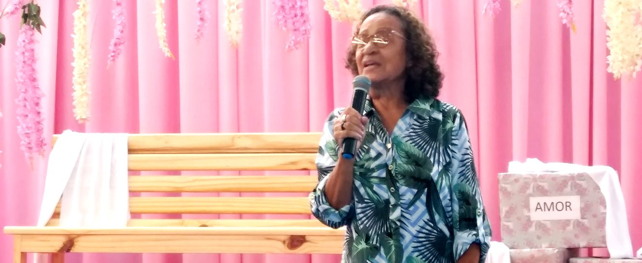 A especialista Rosa Maria fala com os presentes sobre a importância da mulher na sociedade