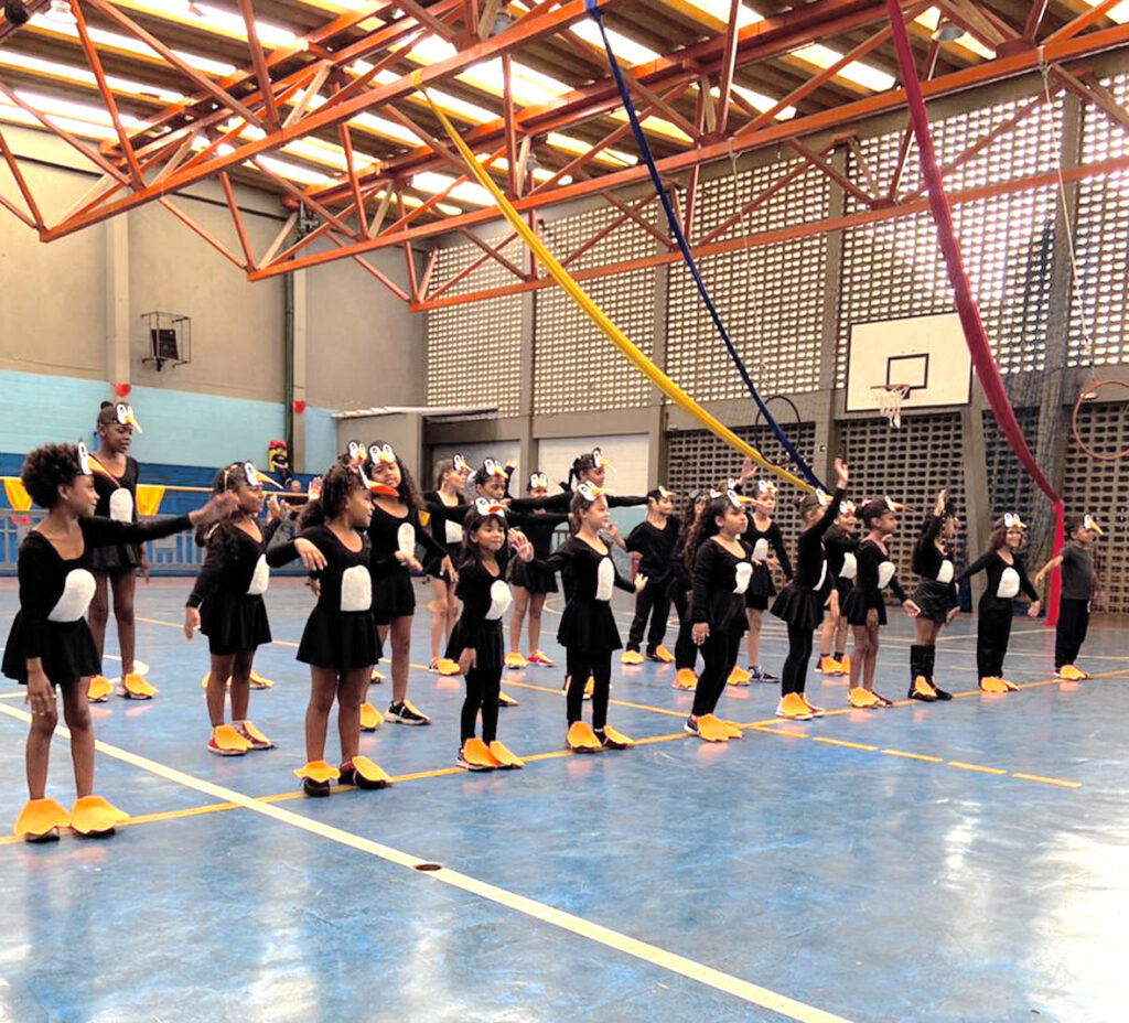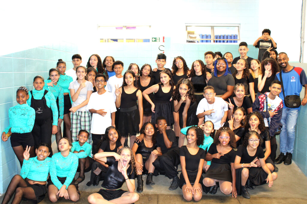 Educandas do Circo Social apresentam performance de dança coletiva durante a Festa da Família 2023.