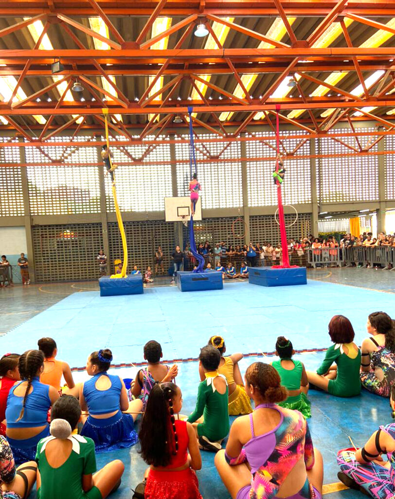 A festa contou com apresentações esportivas e acrobáticas, que se mesclaram à ludicidade dos Centros de Educação Infantil e do Núcleo de Convivência de Idosos, reforçando o potencial intergeracional e de convivência das atividades realizadas na instituição. Com alegria e descontração, várias atrações dos diversos serviços da Obra – CCAs, Circo Social, CEIs e Cedesp, se revezaram no Ginásio e no palco montado na praça de alimentação, onde o público pode acompanhar as apresentações musicais e interagir em um espaço especialmente preparado para a vivência das famílias.