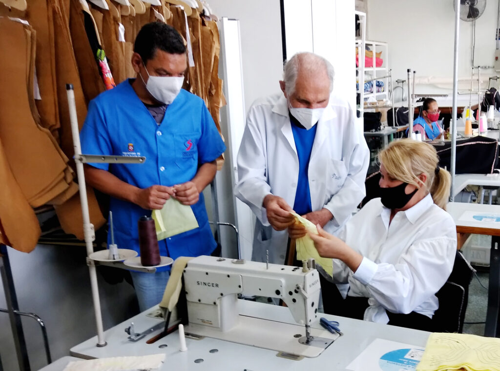 Respeitando todas as normas de distanciamento social e protocolos de saúde, Bia Doria visitou algumas das oficinas da instituição, entre elas a de corte e costura – na qual chegou a operar uma das máquinas, e elogiou educandos e educadores, bem como toda a infraestrutura da obra social.