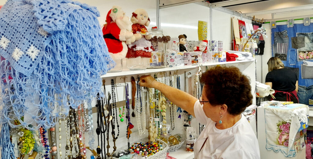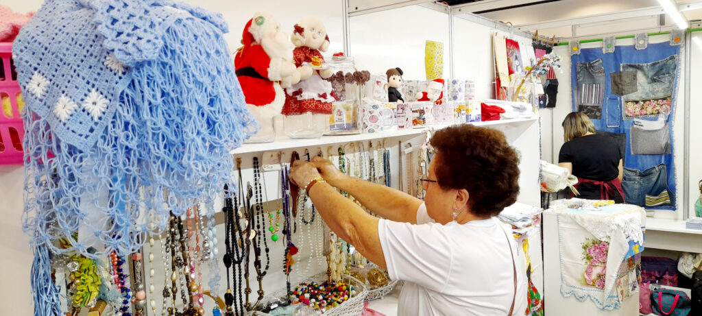 Com artigos e itens criados por oficinas dos nossos cursos profissionalizantes, como a Serigrafia, área de Costura e Confecção em geral, Marcenaria, entre outros, além de serviços como o Núcleo de Convivência de Idosos, o NCI, e a participação de artesãos e voluntários da comunidade, que auxiliaram no atendimento e acolhimento do público, o estande recebeu inúmeros visitantes para, além da venda de itens e artigos, cuja renda é totalmente revertida aos projetos da instituição, apresentar parte do trabalho e das ações desenvolvidas pela nossa Obra.