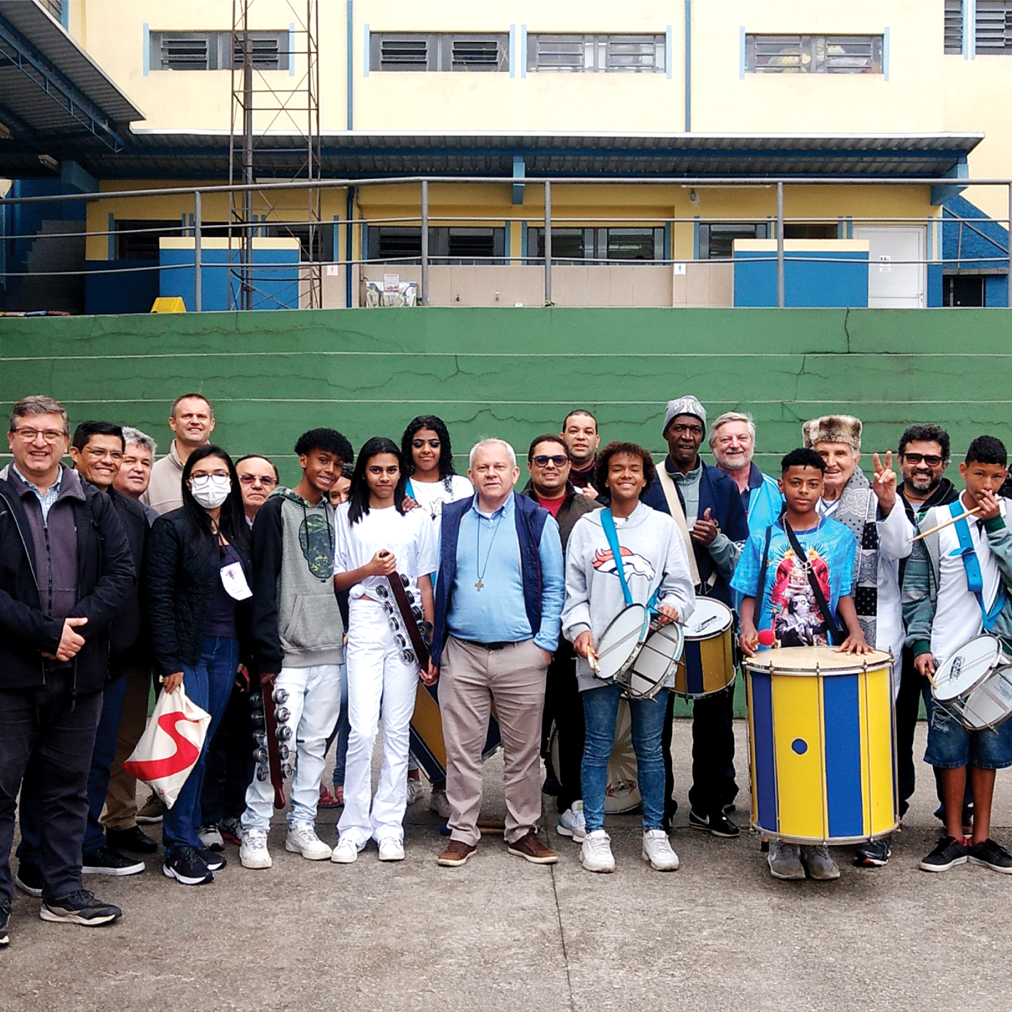 Após o almoço, o grupo se deslocou até a nossa sede para conhecer as instalações e os cursos profissionalizantes oferecidos no Centro de Desenvolvimento Social e Produtivo (CEDESP). Os participantes do Encontro foram recepcionados pelo nosso diretor-tesoureiro, padre Aramis Francisco Biaggi, e por uma apresentação de percussão dos jovens e adolescentes do CCA Aparecida, que empolgou e animou os presentes, em meio a fria tarde em São Paulo, com temperatura na casa dos 16º, 18º graus celsius.