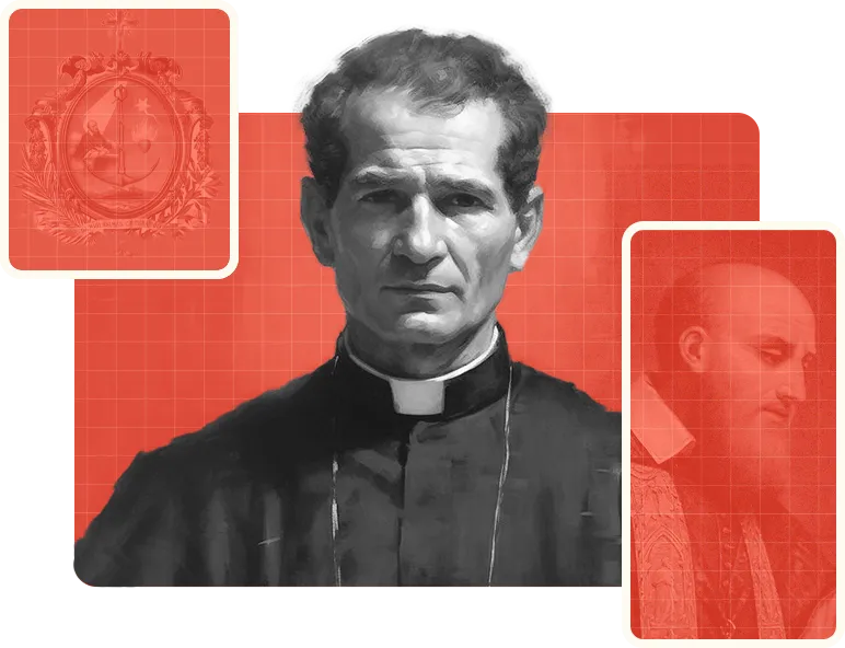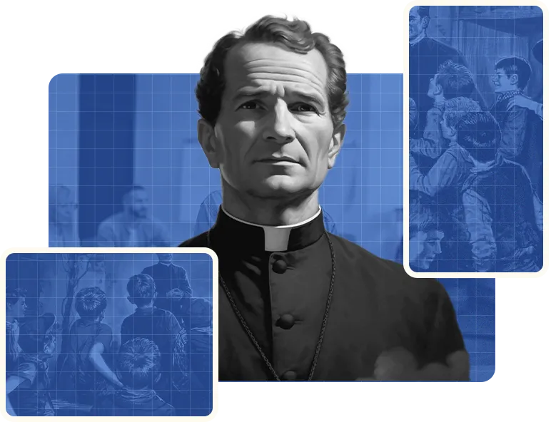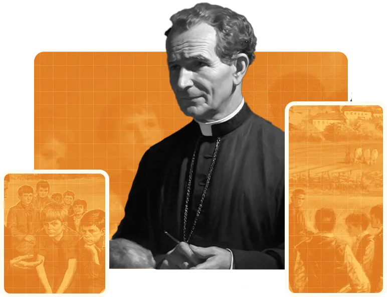Dom Bosco foi um padre italiano, nascido em 1815 num vilarejo chamado Becchi na região do Piemonte. Ao longo de sua vida, Dom Bosco sentiu-se chamado por Deus e deixou para toda a Igreja um carisma que se vive pelo trabalho aos jovens mais pobres, por meio da educação e evangelização. Dom Bosco foi canonizado pelo Papa Pio XI em 1934 e foi declarado como Pai e Mestre da Juventude em 1988 pelo Papa João Paulo II.