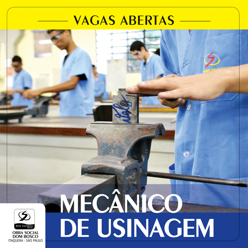 Disponível no período da tarde – das 13h30 às 17h30 -, o curso de Mecânico de Usinagem capacita o educando a usinar peças em materiais ferrosos e não ferrosos utilizando máquinas-ferramentas convencionais, montagem dos conjuntos mecânicos utilizando-se dos processos de ajustagem nos trabalhos individuais ou em grupos; controle de medidas das peças usinadas, tudo de acordo com as normas técnicas, ambientais, de qualidade, de segurança e de saúde.